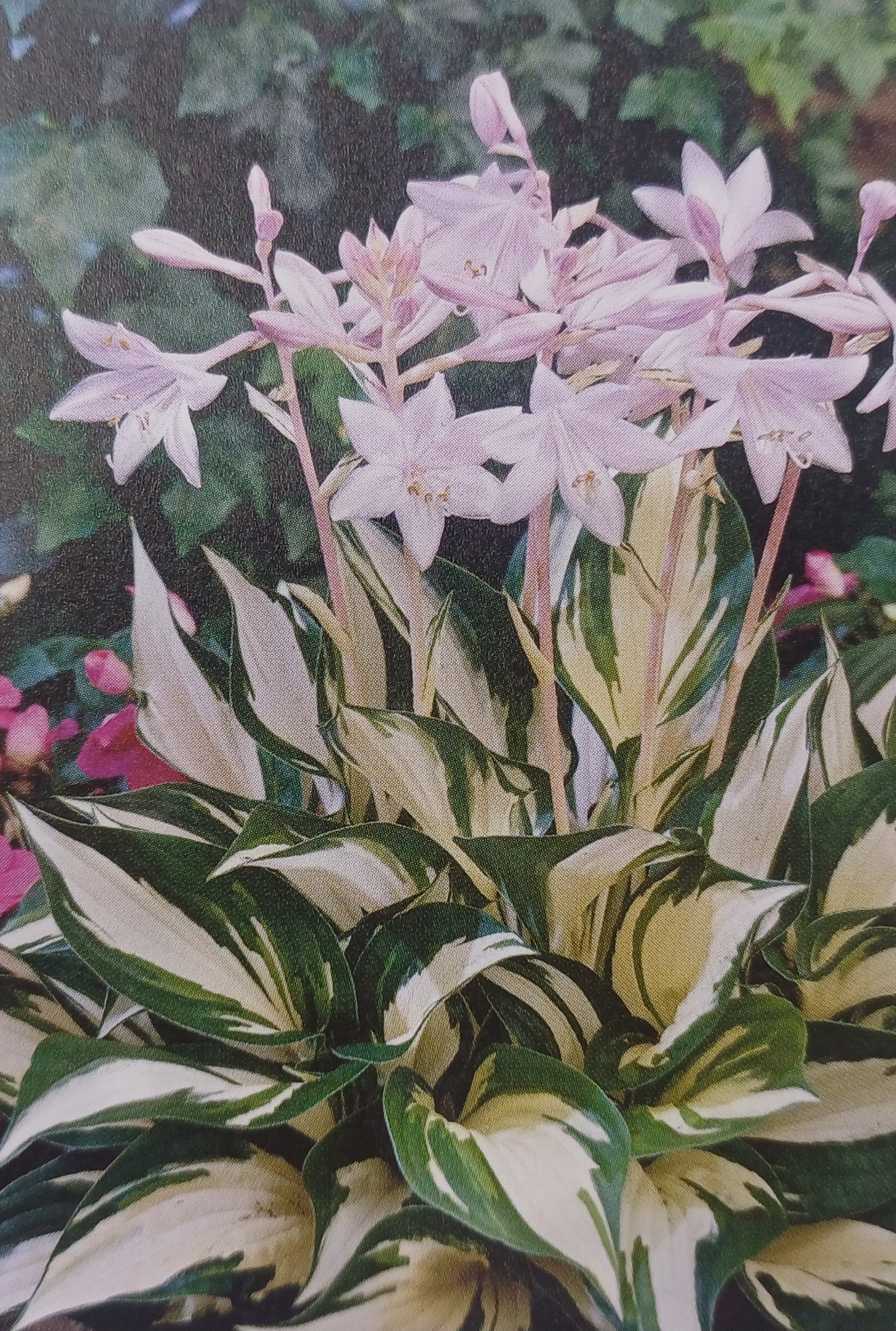 그늘정원 하면 가장 먼저 떠오르는 식물이다. 더운 여름철 시원시원한 호스타 잎을 보고 있으면 더위가 사라지는 듯하다. 우리에게 예전부터 있던 옥잠화, 비비추가 친숙할 수 있지만, 호스타라는 학명으로 셀 수 없을 만큼 품종들이 육종, 유통되고 있다. 잎의 크기, 자라짐새에 따라 대형·중형·소형종으로 나뉜다. 잎은 주로 초록색, 은청색, 노란색 계열의 색감이 다양하게 혼합되고, 그림을 그려 놓은 듯 잎이 물감을 한방울 떨어뜨려 놓은 듯 품종마다, 다양한 색을 보여주며 그늘정원에 빛을 밝혀준다.