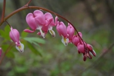 금낭화(Lamprocapnos spectabilis)는 양귀비과에 속하는 다년생 초본식물로, 심장 모양의 독특한 꽃을 길게 늘어뜨리는 것이 특징이다. 키는 50~100cm 정도로 자라며, 봄철에 청록색 부드러운 잎과 함께 화려한 분홍색 또는 흰색 꽃을 피운다. 꽃은 총상화서 형태로 한 방향으로 길게 이어져 흐드러지며, 마치 하트 모양이 물방울처럼 터질 듯한 모양을 하고 있어 'Bleeding Heart'라는 별칭도 가진다. 금낭화는 초봄에 꽃을 피우고, 여름 더위가 시작되면 지상부가 말라 휴면 상태에 들어가는 생태적 특징을 지닌다. 부드러운 꽃과 섬세한 잎이 조화를 이루어 정원이나 조경 공간에 우아함을 더하는 식물이다.
