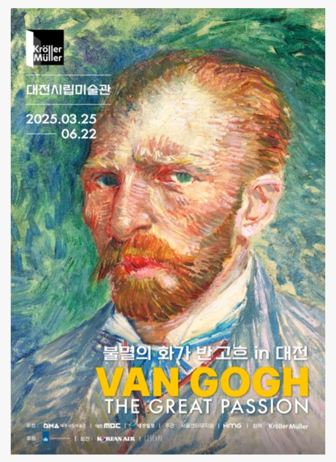 2025년 3월 25일부터 6월 22일까지 대전시립미술관에서 《불멸의 화가 반 고흐》 특별전이 열린다. 이번 전시는 휴관일 없이 진행되며, 네덜란드 크뢸러 뮐러 미술관의 소장품 76점(유화 39점, 드로잉 37점)이 출품된다. 전시 장소는 1~4전시실이며, 이 회고전은 반 고흐의 예술 세계를 종합적으로 조망하는 국내 유일의 전시로, 그의 대표작을 직접 감상할 수 있는 기회를 제공한다. 주요 작품으로는 〈자화상(1887)〉, 〈착한 사마리아인(1880)〉 , 〈감자 먹는 사람들(1885)〉 등이 있으며, 정신병원에서 그린 작품들도 포함되어 있다. 이를 통해 고흐의 예술적 변화와 내면 세계를 깊이 탐구할 수 있다.