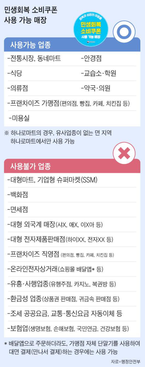 소비쿠폰은 지역 내 소상공인을 지원하기 위한 목적으로 사용처가 제한되어 있다.