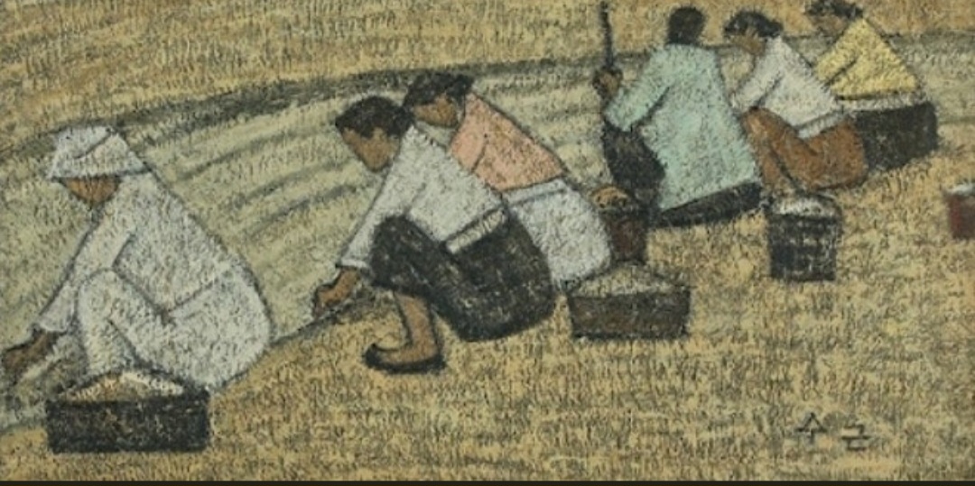 마트에서 장을 봤더니 노곤하다. 그래서인지 애쓰지 않아도 이해가 되는 우리나라 화가의 그림이 보고 싶다. 박수근은 젊어서 좋아한 화가이다. 그의 대표작 <빨래터> 를 감상하겠다.