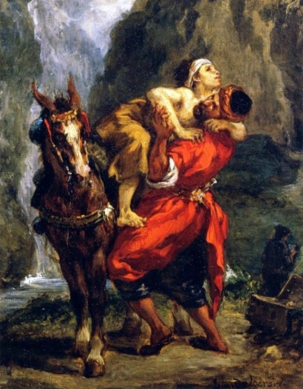 외젠 들라크루아의 〈착한 사마리아인〉(1849)은 루브르 박물관에 소장된 종교화로, 고전적인 구성과 낭만주의적 감정 표현이 돋보이는 작품이다. 들라크루아는 쓰러진 사람을 들어 올리는 사마리아인의 모습을 통해 연민과 도덕적 실천을 강조한다. 고흐는 이 그림에 감명받아 자신의 방식으로 재해석하며, 원작의 인물 구성을 유지하되 강렬한 색채와 감정의 흐름을 덧입힌다. 특히 고흐의 그림에서는 붓질의 리듬과 색의 소용돌이가 돋보이며, 이는 단순한 복제를 넘어 예술적 응답이라 할 수 있다. 고흐는 들라크루아의 주제를 계승하면서도 자신의 고통과 구원을 함께 담아냈다.