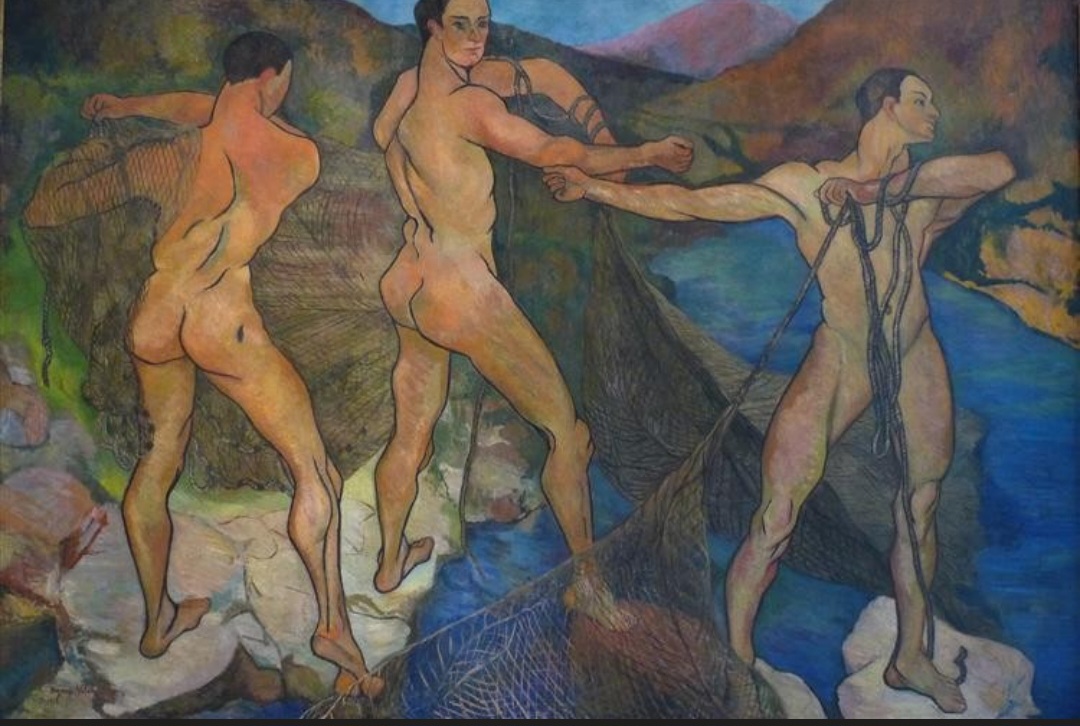<투망(The Casting of the Net, 1914)>은 수잔 발라동의 대표작 중 하나로, 나체의 남성 세 명이 강가에서 그물을 던지는 장면을 묘사한다. 이 작품은 단순한 누드화를 넘어, 인간의 노동과 협동, 움직임의 순간을 힘 있고 생생하게 그려낸다. 발라동은 남성의 신체를 성적 대상화하지 않고, 근육과 자세를 치밀하게 관찰해 인간의 원초적 에너지와 존엄성을 표현한다. 남성 누드를 여성 화가의 시선으로 당당히 그려냈다는 점에서 이 작품은 당시 미술계에 큰 반향을 일으킨다. 배경의 자연과 인물의 육체는 서로 어우러지며, 인간과 자연의 조화, 그리고 삶의 생명력을 시각적으로 전달한다. <투망>은 육체의 미학뿐 아니라, 노동과 존재에 대한 깊이 있는 성찰을 담고 있다.