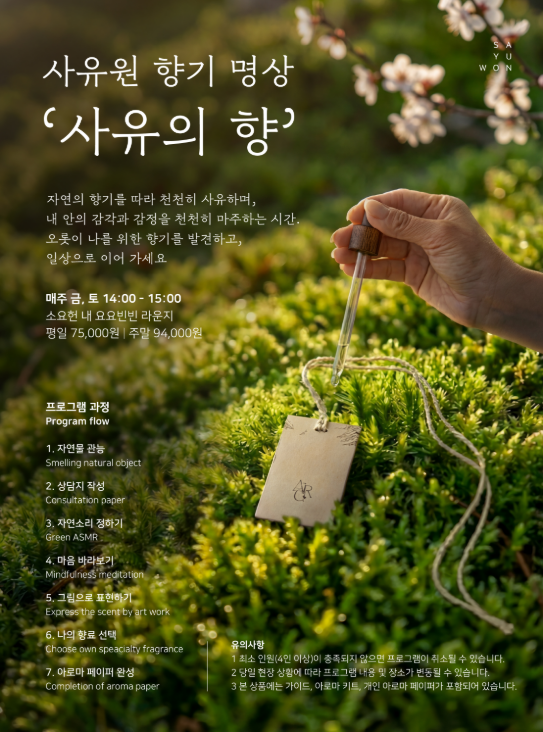 - 사전 예약: 모든 프로그램은 사유원 공식 홈페이지(sayuwon.com)에서 예약해야 합니다.
