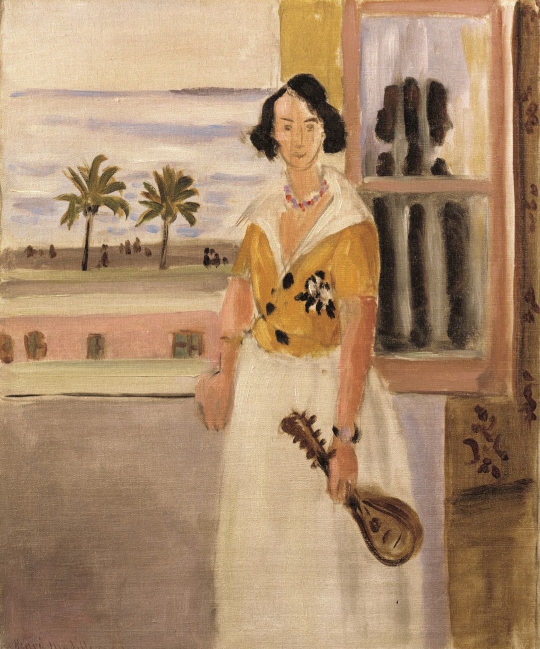 이 작품은 마티스가 빛과 색을 단순화하면서도 생동감을 유지하는 방식을 보여준다. 창문을 통한 빛의 반사와 그림자의 활용, 그리고 만돌린의 유려한 곡선을 통해 실내 공간에서도 역동적인 구성을 이루며, 마티스 특유의 색채 실험과 평면적 구도의 특징을 잘 드러낸다.