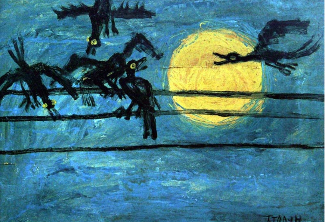 이중섭의 〈달과 까마귀〉 는 내가 좋아하는 유형의 그림이다. 형태를 사진처럼 똑같이 그리지 않고, 대충 그린 듯 하지만 의도한 바를 정확히 표현하는 따뜻한 그림을 좋아한다. 시꺼먼 까마귀 그림이 인간적이고 따뜻한가? 그렇다! 그림속 까마귀와 달, 전깃줄도 너무 사랑스럽다.