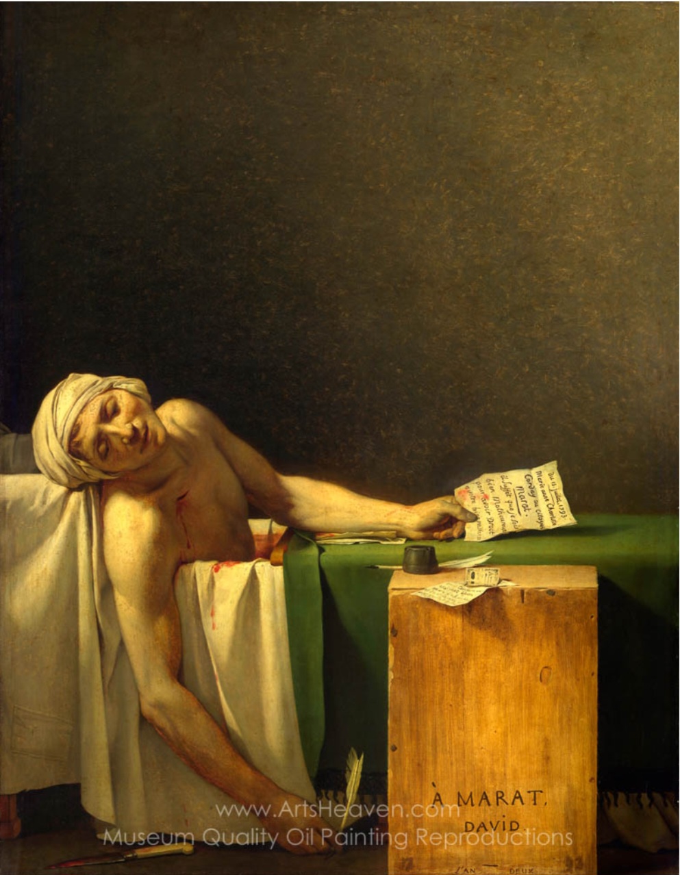 가장 정치적인 그림은 자크루이 다비드의 <마라의 죽음> 이다. 다비드는 마라의 죽음을 통해 혁명 정신을 선전하고, 그를 역사적 영웅으로 기리기 위해 이 그림을 그렸다. 배경은 어둡고 불명확하며 출처를 알 수 없는 강한 한 줄기의 빛이 집중 조명의 극적인 효과를 내면서 마라의 얼굴과 팔을 비추고 있다. 불필요한 부분은 과감히 생략하고 순교자의 초상화를 훌륭하게 완성했다.