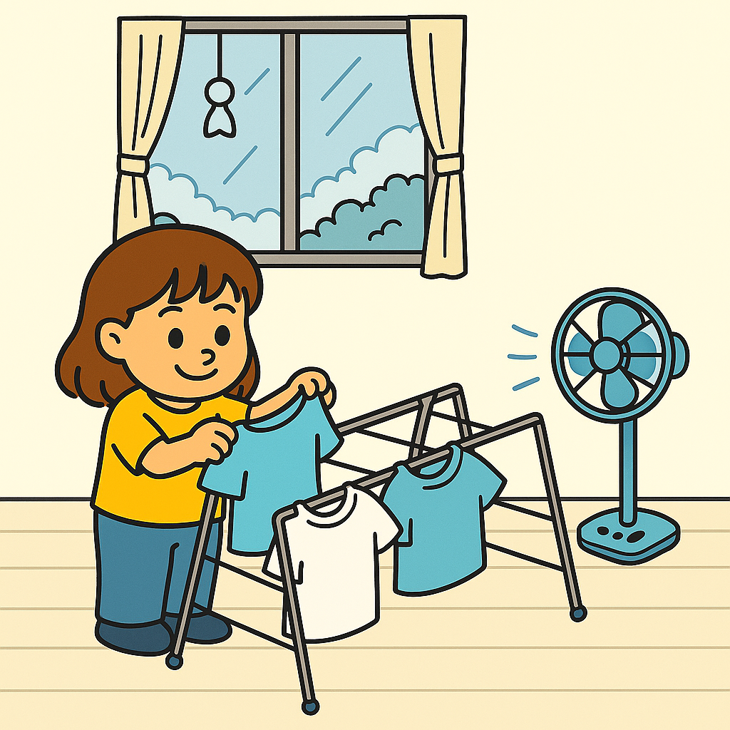 빨래를 실내에 말려야 한다면, 최대한 바람이 통하는 공간을 선택해야 합니다. 예를 들어 창문이나 베란다 문을 조금 열어 두어 미세한 바람이라도 들어오게 하면 습한 공기를 내보내 건조를 돕습니다. 특히 건조대를 벽에 바짝 붙이지 말고 최소 15cm 이상 띄워서, 가급적이면 방 중앙 등 공기 흐름이 좋은 위치에 두는 것이 좋습니다. 벽 가까이는 바람이 막혀 습기가 정체되기 쉽고, 이로 인해 옷이 잘 마르지 않아 냄새가 날 수 있기 때문입니다. 또한 가능하면 욕실처럼 밀폐되고 습기가 많은 공간은 피하고, 거실이나 베란다처럼 환기가 가능한 곳에서 말리는 것이 좋습니다. 장마 기간 중 비가 잠시 그치는 시간이 있다면 창문을 활짝 열어 실내 습기를 빼주고 자연 바람을 적극적으로 받아들이는 것도 한 방법입니다.