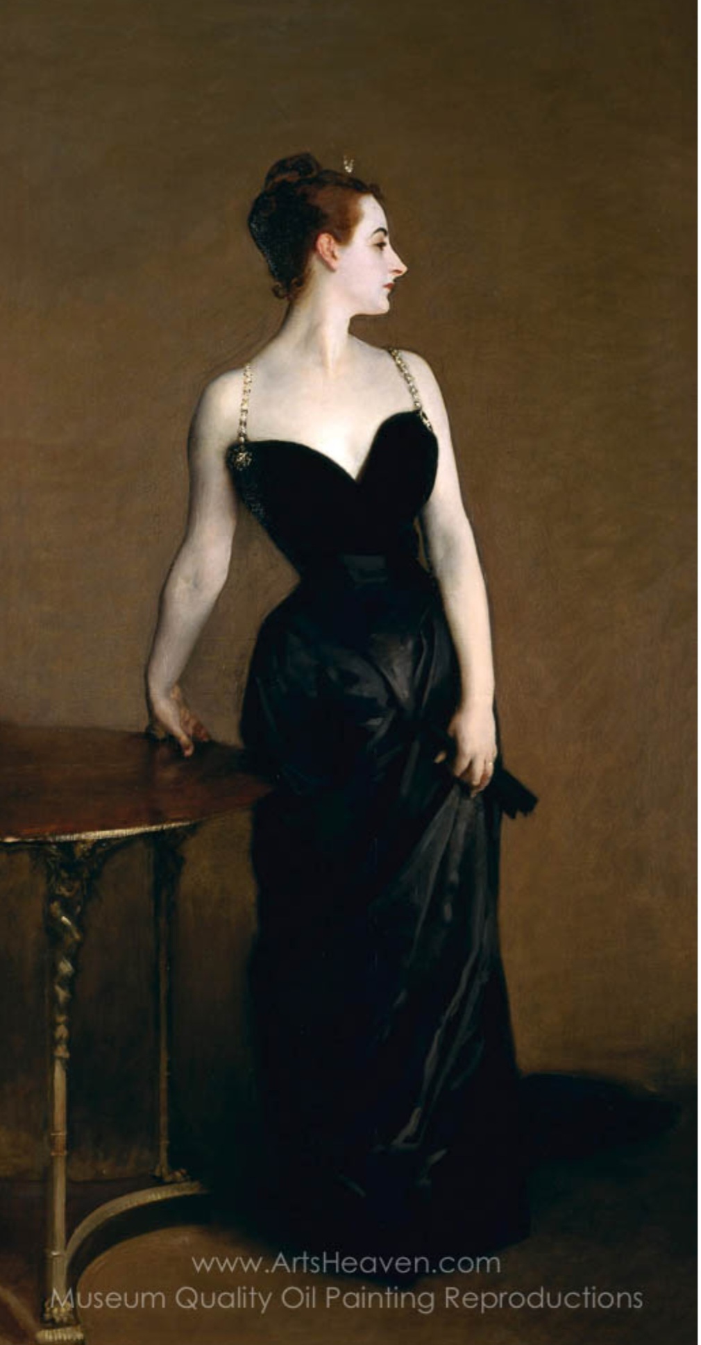 그의 대표작 중 하나인 <마담 X의 초상화>(Portrait of Madame X, 1884)는 프랑스 사교계 유명인인 비르지니 고트로(Virginie Amélie Avegno Gautreau)를 모델로 한 작품이다. 그림 속 모델은 검은 드레스를 입고 도도한 자세로 서 있으며, 창백한 피부와 단순한 배경이 강한 대비를 이루어 신비롭고 우아한 분위기를 자아낸다. 그러나 당시 프랑스 사회에서 원래 그림에 묘사된 드레스의 어깨끈이 흘러내린 모습이 지나치게 도발적이라고 여겨져 논란이 되었다. 결국 사전트는 비판을 피하기 위해 어깨끈을 다시 올려 수정해야 했다. 1884년 파리 살롱(Salon)에서 이 작품이 공개되었을 때, 보수적인 사회 분위기 속에서 부정적인 반응이 압도적이었으며, 모델의 가족조차 사전트에게 전시 철회를 요구하는 등 큰 파장이 일었다.