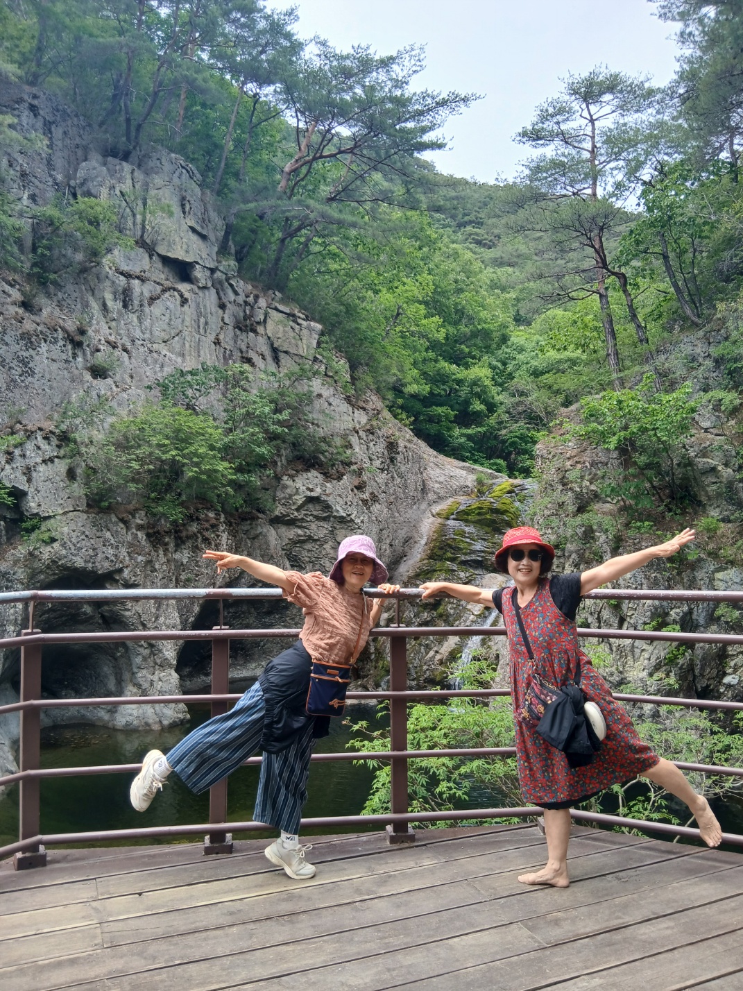 둘째 날은 새벽에 가야 안개가 자욱한 멋진 모습을 볼 수 있다고 해서 6시경에 주산지에 도착했다. 그런데 수령이 오래된 수변식물 왕버들의 생장을 위해 저수지의 물을 인위적으로 방출해 수위가 낮아져서 이전 모습은 아니었다. 그래도 아침에 산길을 걷는 것만으로도 행복했다. 오전 9시 소노벨 내 수달래 식당에서 뷔페를 먹었는데 음식이 다양하고 맛있었다. 식사 후에 주왕산 국립공원으로 이동해, 용추폭포와 용연폭포를 잇는 트레킹 코스를 걸으며 절경을 감상했다. 주왕산은 규모는 작지만 아기자기한 멋이 있다. 이어 달기 약수탕에 갔는데 서울식당 등 많은 곳이 산불로 전소되어 운좋게 살아남은 위쪽 황토로 지어진 식당에서 백숙을 먹고 숙소로 돌아왔다. 산을 두번이나 갔기에 2만보 이상 걸어서 쌓인 피로는 지하 3층에 위치한 솔샘온천에서 풀었다. 야외 온천이 있어 답답하지 않고, 편백나무로 만든 탕에서 보는 작은 탑에 설치된 조명을 보고 있자니 현실세계가 아닌 듯 환상적이었다.
