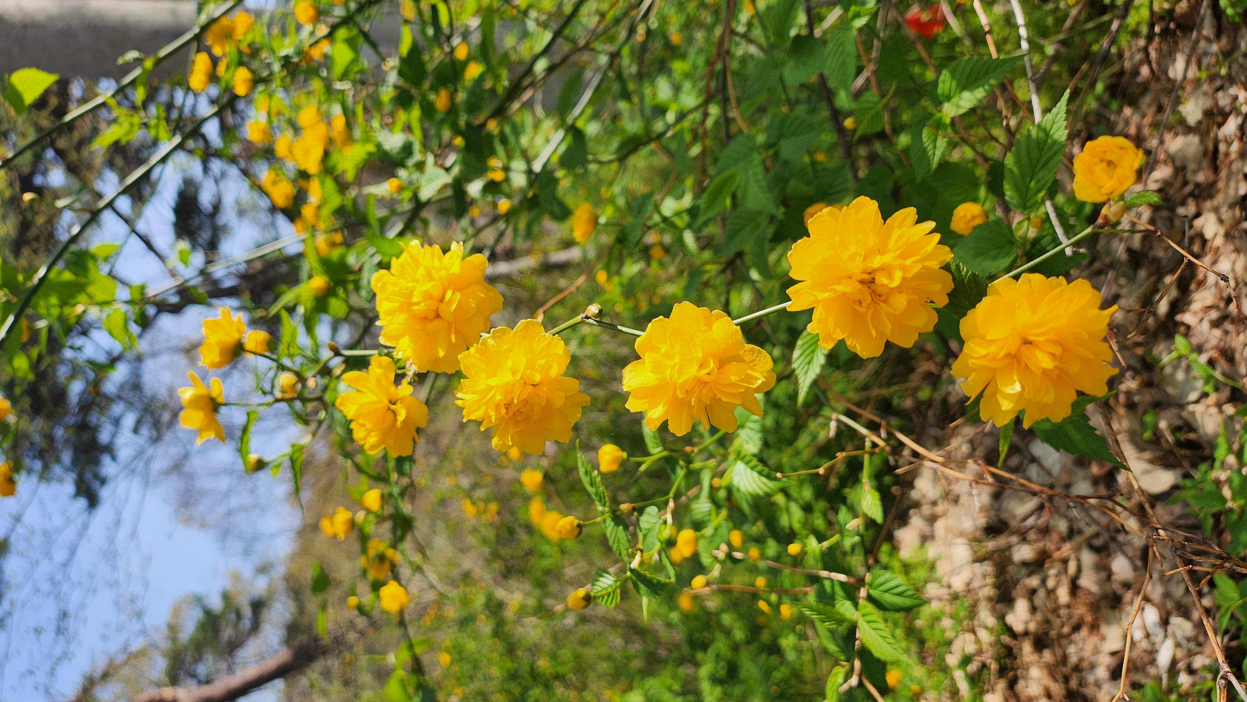 한편 황매화와 자주 혼동되는 겹황매화는 같은 종에서 개량된 원예종으로, 20장 이상의 꽃잎이 겹겹이 포개진 화려한 형태의 꽃을 피운다. 겹황매화는 국화처럼 둥근 꽃 모양을 지니며, 황매화보다 더 풍성하고 장식적인 인상을 준다. 정원이나 공원 등에서 관상용으로 널리 식재되며, 가지치기를 통해 수형을 잡기 쉬워 조경수로도 인기가 많다. 반면 자연미를 중시하는 사찰이나 전통 경관지에서는 단아한 황매화가 더 자주 식재되며, 갑사 황매화 역시 대부분 단화 형태이다. 꽃을 감상할 때 이 둘의 차이를 알고 보면 봄꽃 여행이 더욱 풍성해진다.