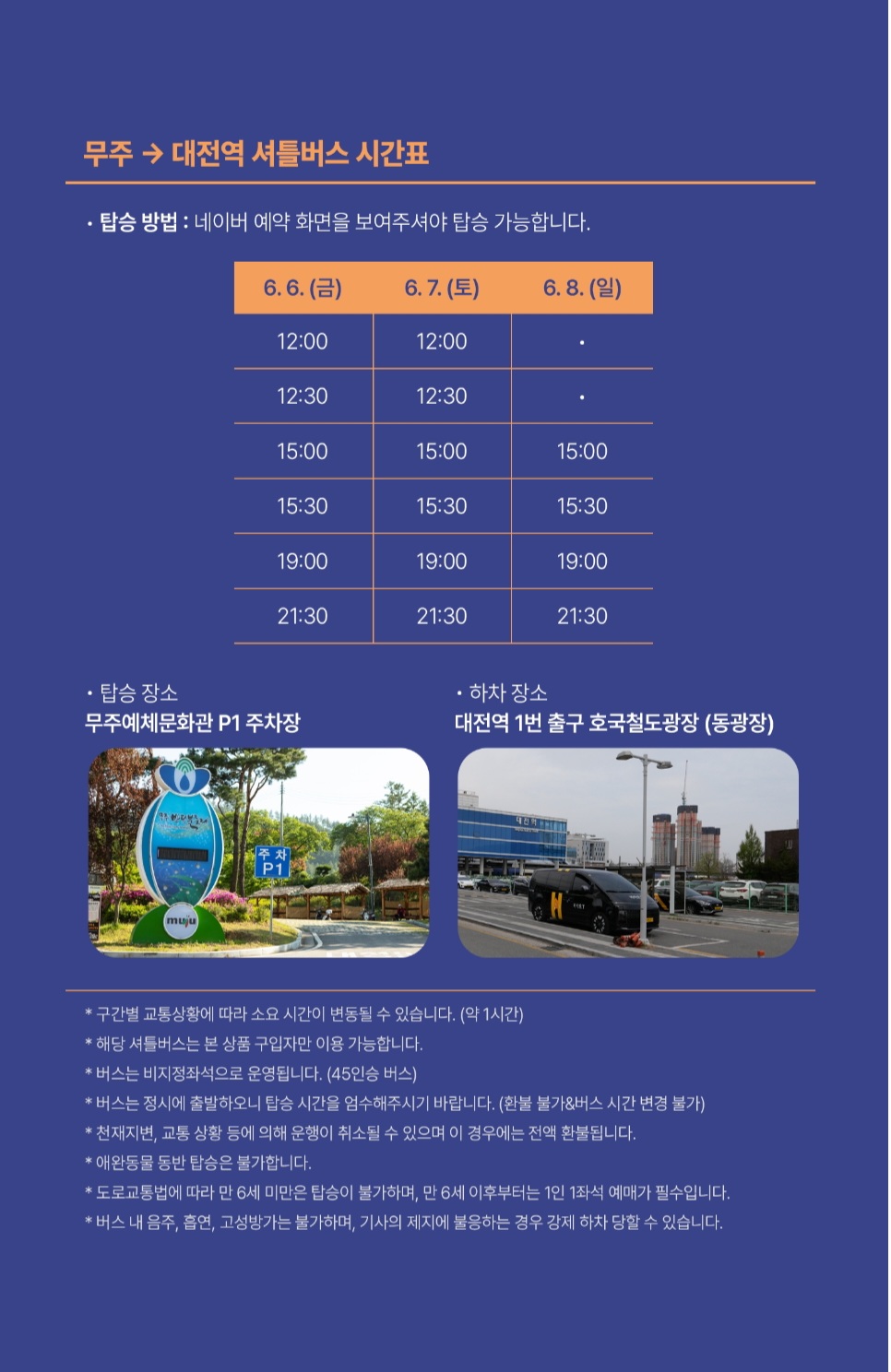 대전역 -> 무주 셔틀버스 시간표, 사전 예매자만 이용 가능